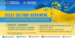 În contextul Anului Culturii Ucrainene în Republica Moldova, în capitală se vor desfășura în perioada 10-12 mai Zilele Culturii Ucrainene la Biblioteca Națională. Astfel, cu acest prilej sunt preconizate mai multe evenimente socio-culturale. Astfel, pe 10 mai, la ora 15.00, la instituție va fi efectuată o vizită de studiu profesional a reprezentanților Bibliotecii Naționale Științifice
