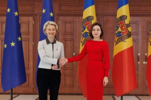 Președinta Comisiei Europene, Ursula von der Leyen, a venit joi la Chișinău. Șefa statului a declarat că această vizită reprezintă un puternic semn de sprijin pentru eforturile Republicii Moldova de aderare la Uniunea Europeană. „I-am reconfirmat Președintei Comisiei Europene că țara noastră face tot ce îi stă în putință pentru a îndeplini toate angajamentele pentru