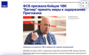 Declarațiile și acțiunile fondatorului Grupului „Wagner”, Evgheni Prigojin, reprezintă de fapt chemări la declanșarea unui conflict civil armat, au declarat sâmbătă responsabilii de comunicare ai Serviciului Federal de Securitate (FSB) din Rusia. „Afirmațiile și acțiunile lui Prigojin reprezintă de fapt chemări la declanșarea unui conflict civil armat pe teritoriul Federației Ruse și reprezintă o lovitură